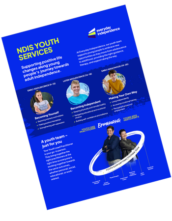 Our youth services are available to NDIS participants aged 9-25 years. However Everyday Independence can support NDIS participants aged up to 65 years with any of their goals.
